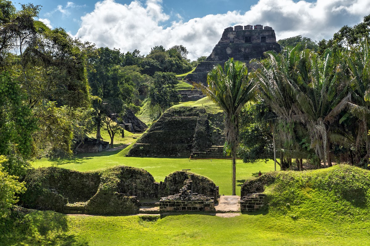 Avant de quitter le Belize, court passage de bac pour traverser une petite rivière (au retour c'est Merlin qui a tourné la manivelle pour rejoindre la rive) et visiter le joli site maya de Xunantunich.
